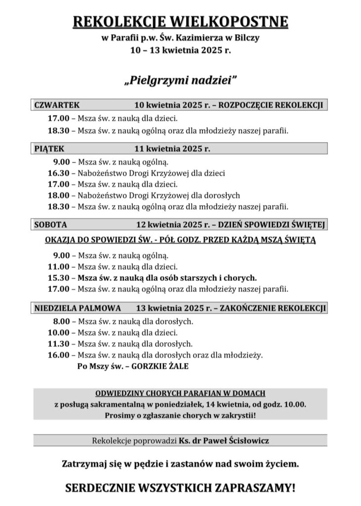 REKOLEKCJE WIELKOPOSTNE 2025r.