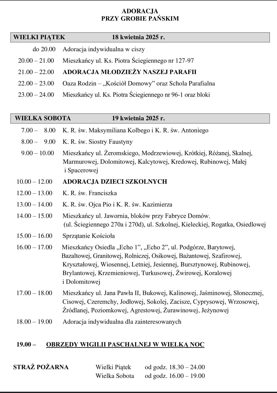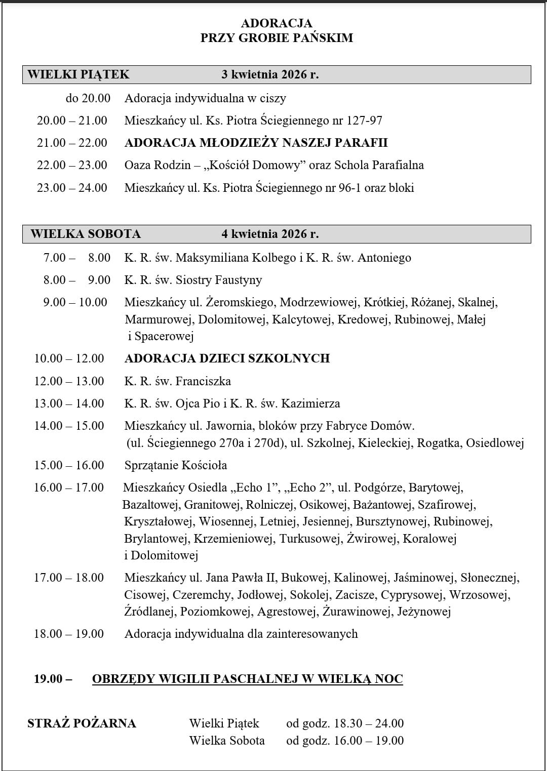 TRIDUUM PASCHALNE i HARMONOGRAM ADORACJI CZUWANIA PRZY GROBIE